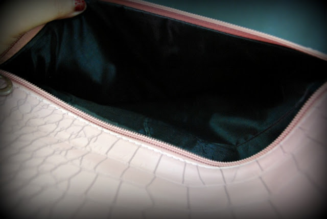 Clean exterior and interior. But it should be noted that there is a small blue dot on the bottom right. Made from PU. Similar to asos portfolio clutch.